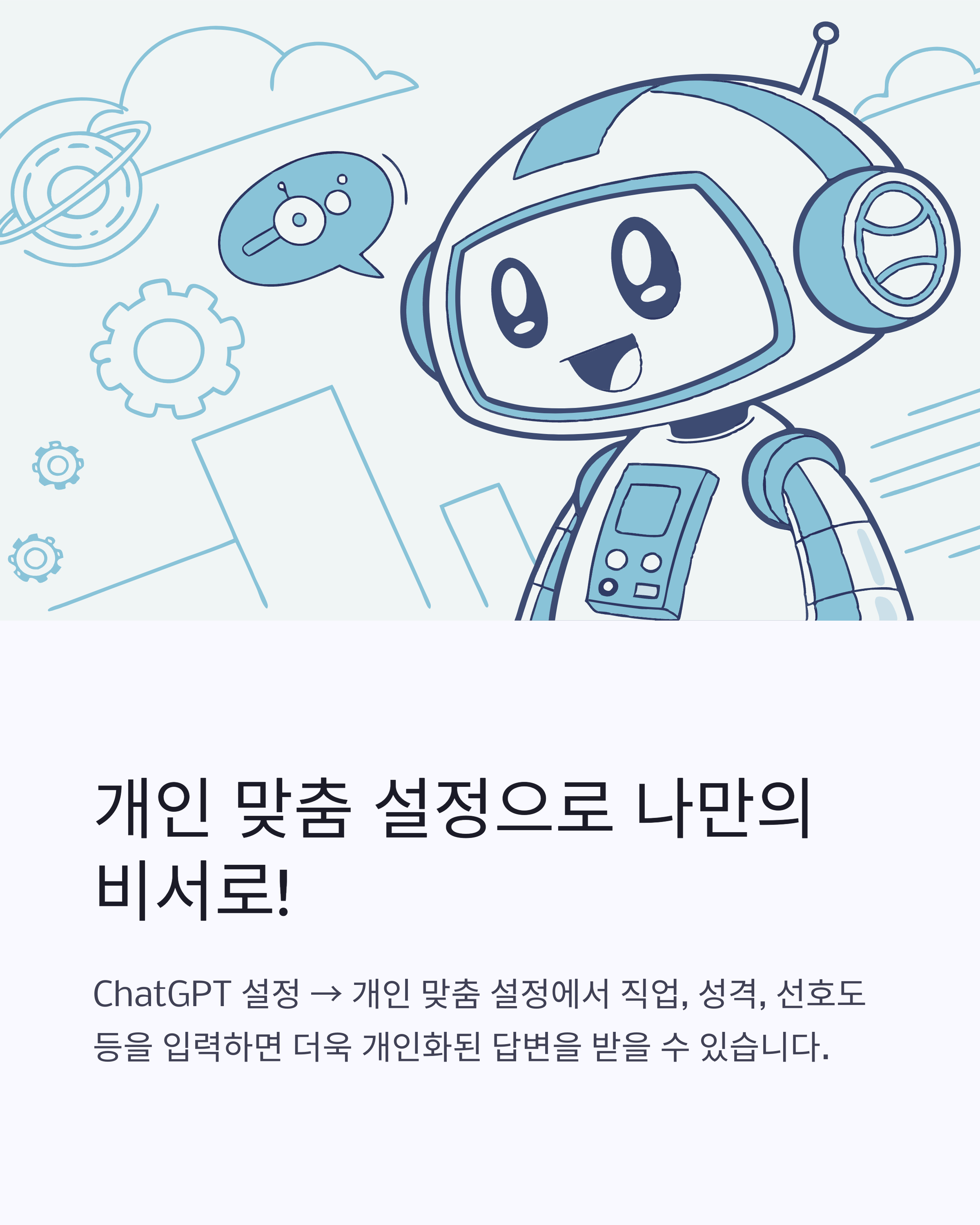ChatGPT는 개인 맞춤 설정을 통해 사용자의 직업, 성격, 선호도 등을 학습하고, 더욱 개인화된 답변을 제공할 수 있습니다. 마치 나만의 비서처럼 말이죠.